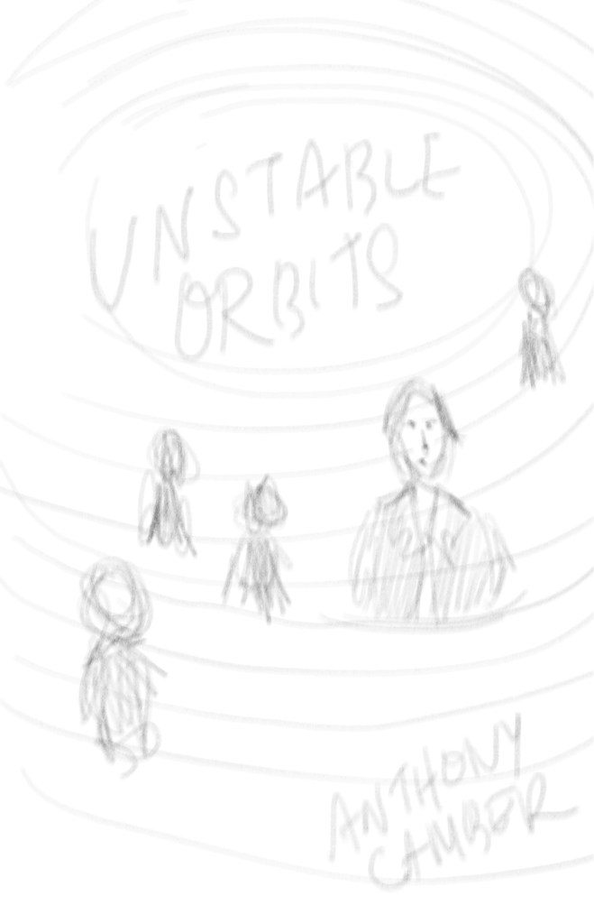 Each of them uses orbiting as the dominant concept, with the main characters of the book caught in the gravity. I think we’ll be able to show the book’s humour with any of these, in refined form.