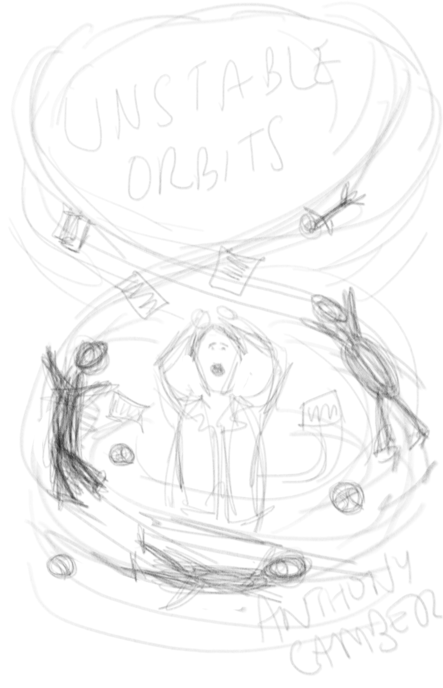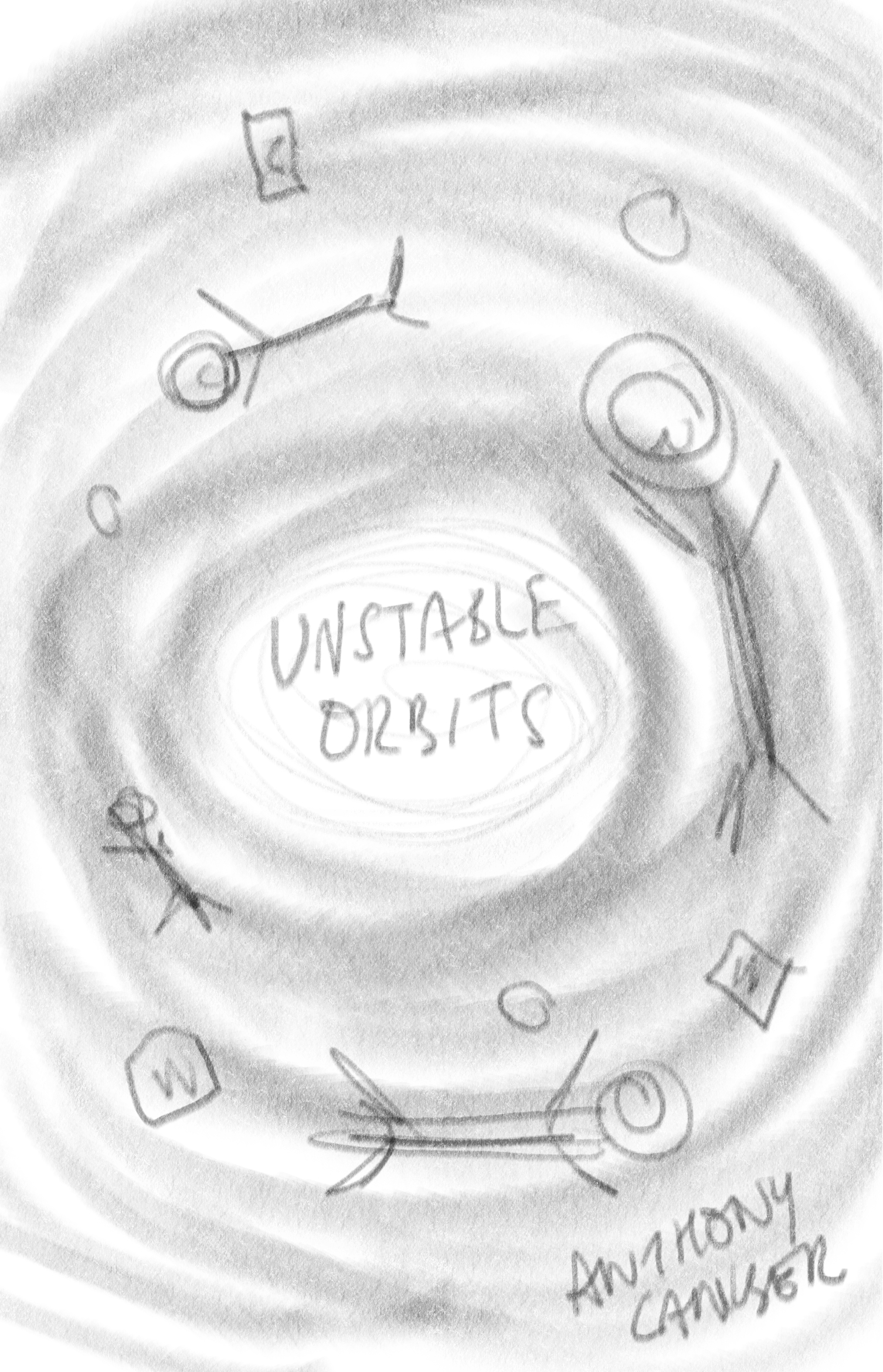 Each of them uses orbiting as the dominant concept, with the main characters of the book caught in the gravity. I think we’ll be able to show the book’s humour with any of these, in refined form.